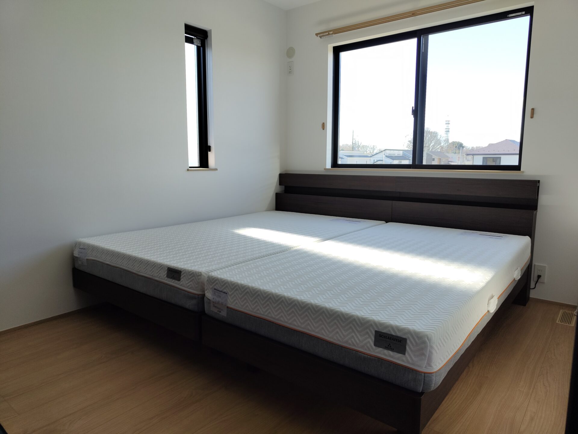 側板のないヘッドボードのデザインは2台並べるとすっきりとしたワイド感が強調されます。