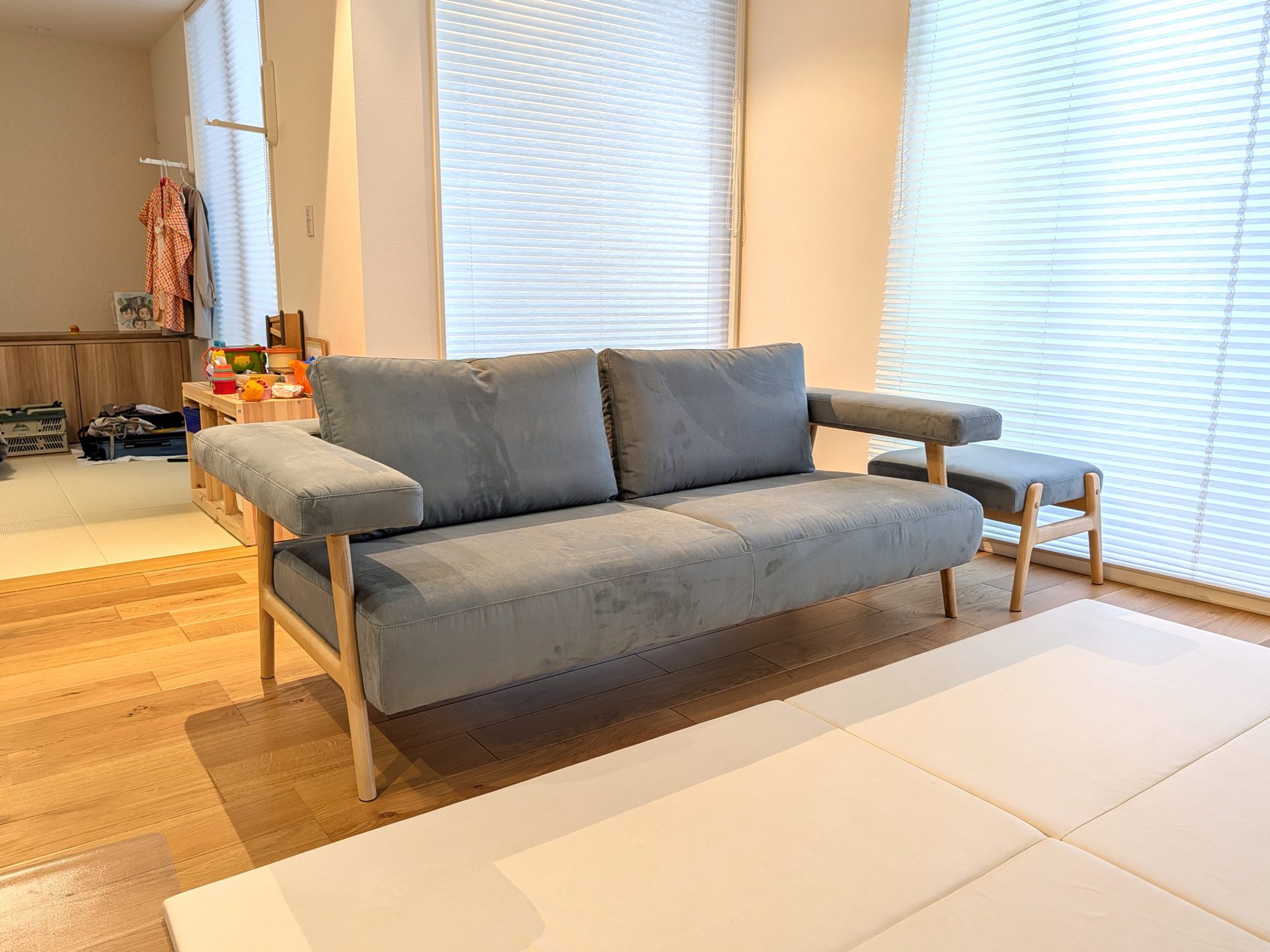 鴻巣市のO様に3人掛けソファとオットマンを納品させていただきました。