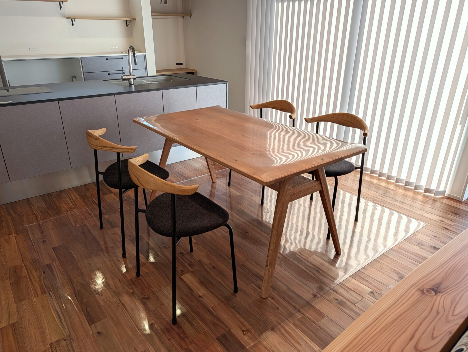 ダイニングテーブルとセンターテーブルは同シリーズの商品を揃えて頂きましたので、天板の表情や脚の形状も揃っています✨️