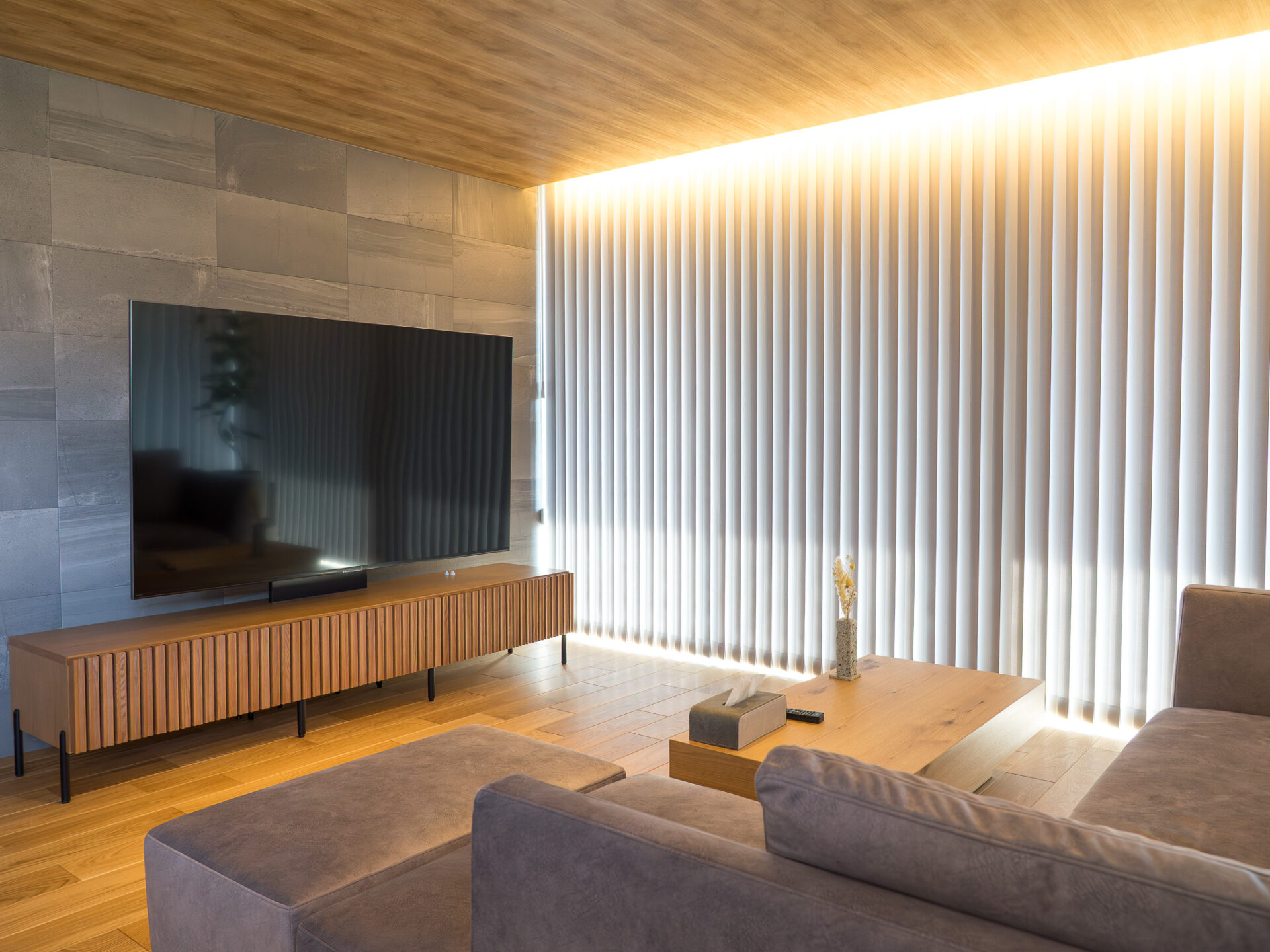 縦格子のデザインが、バーチカルブラインドとぴったりマッチしています。