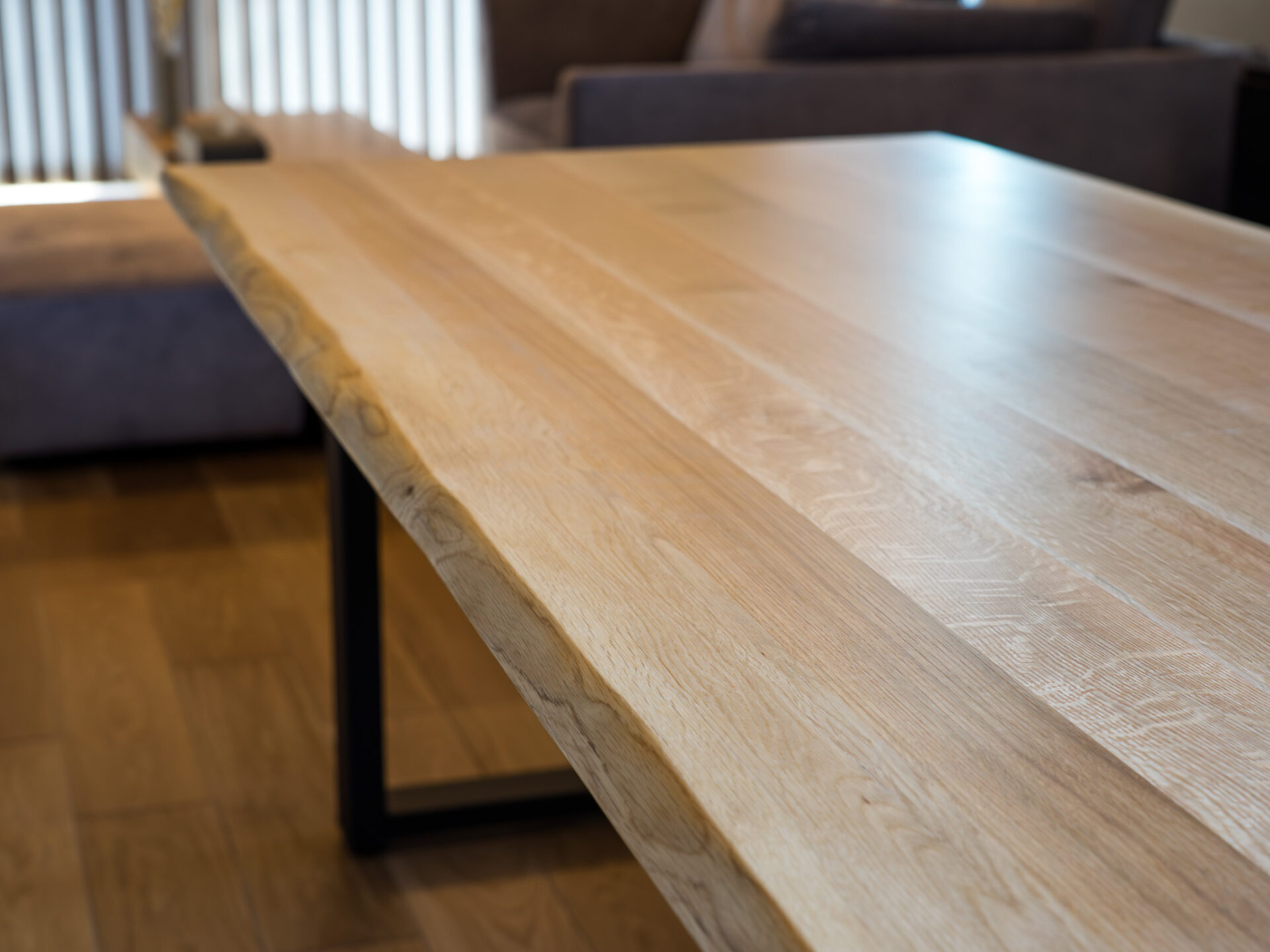 ダイニングテーブルは、天然木の耳付き。