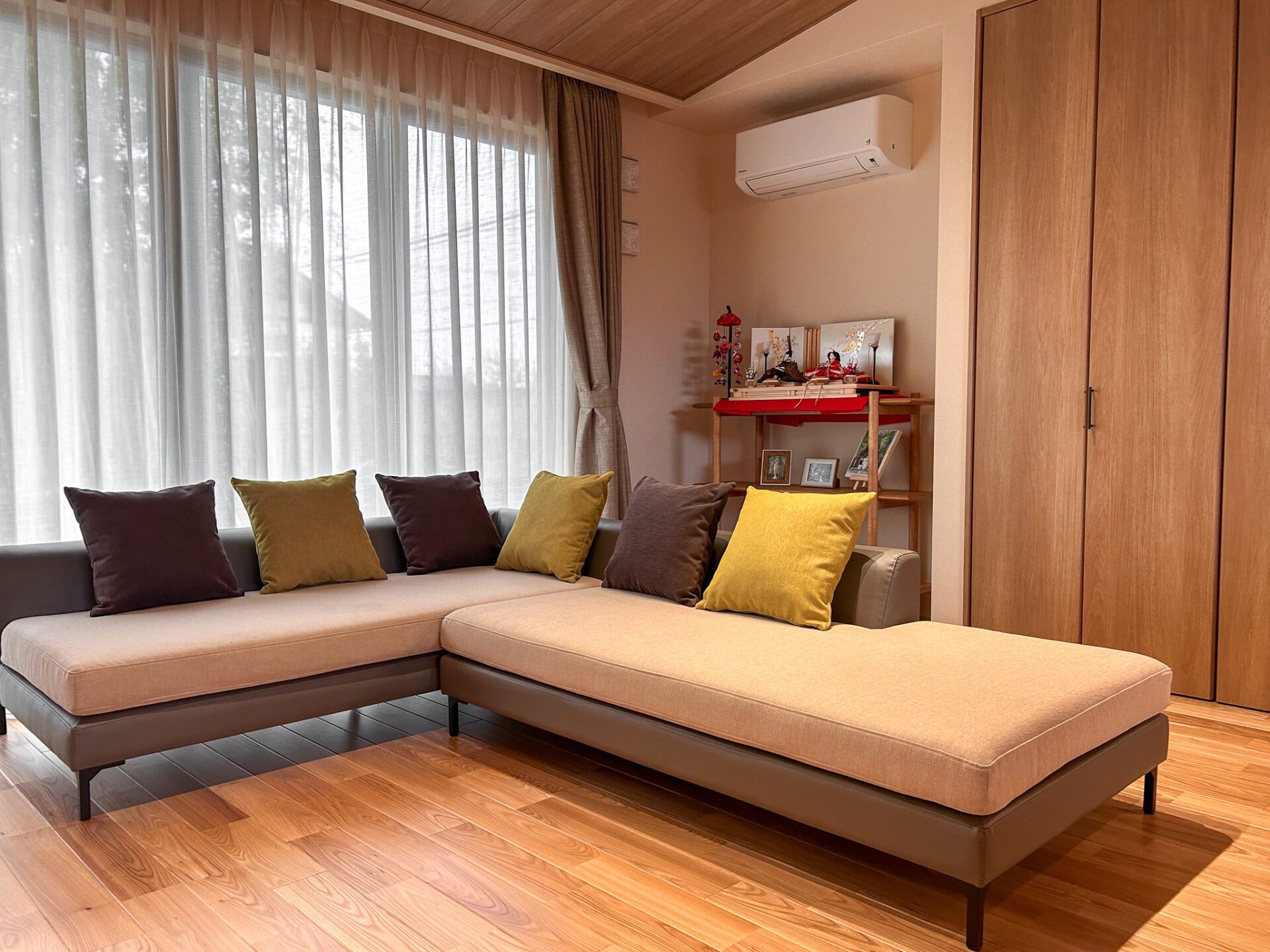 サイズは幅250cm超と大きなソファですが、お部屋が広々と見えますね✨️