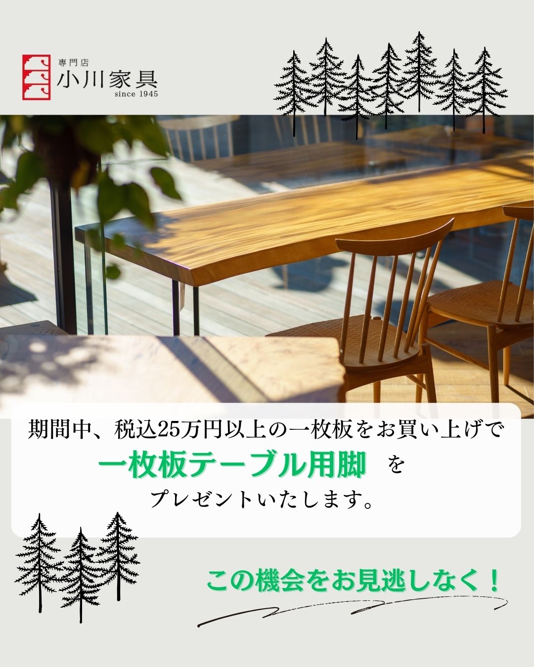 期間中に税込25万円以上の一枚板をご購入いただくと、