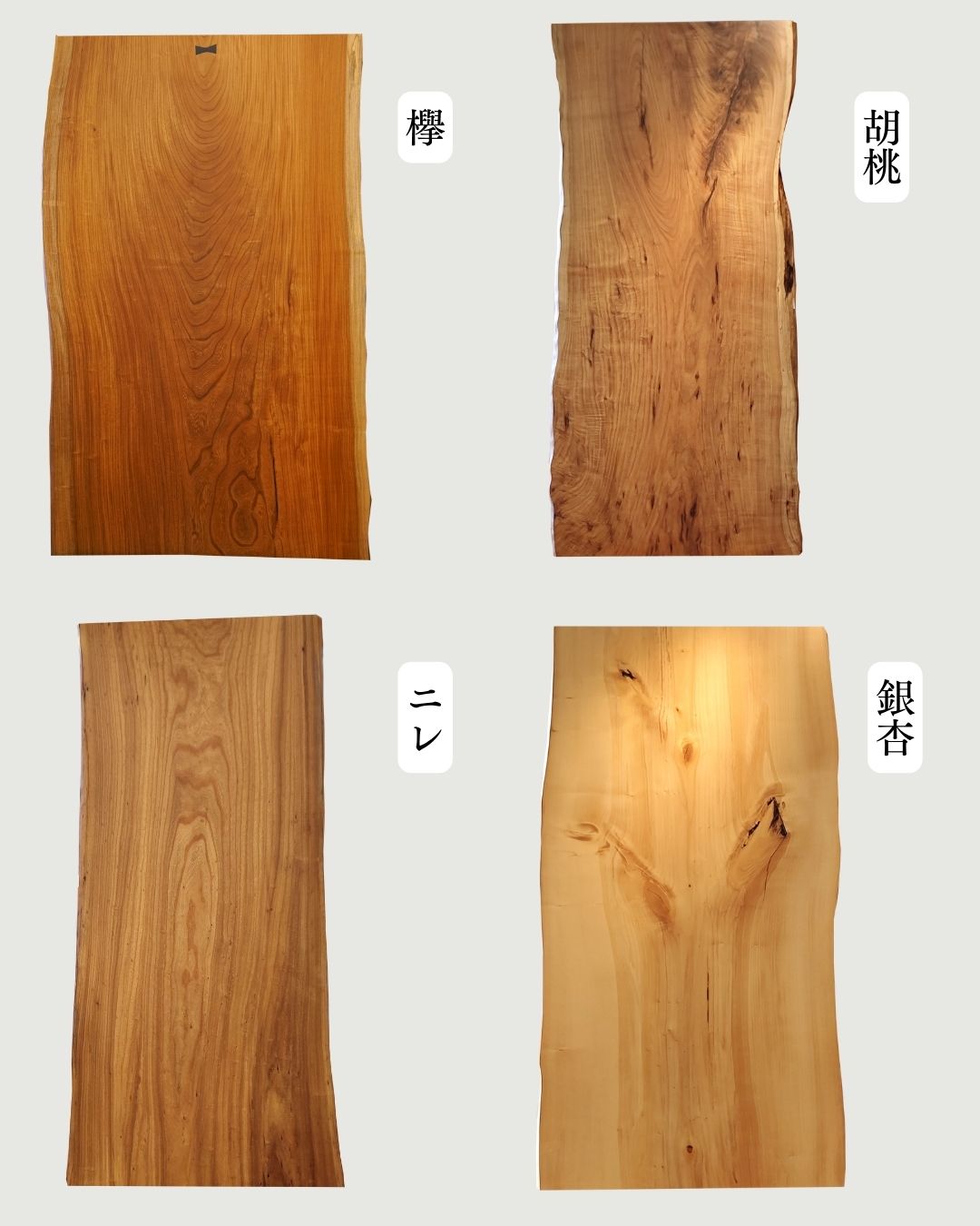 個性豊かな木目はまさに一点もの。